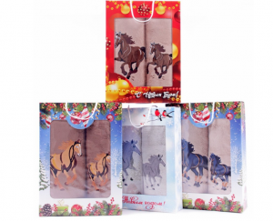 Набор в шоколадке полотенце рогожка 40х75 в ассортименте Новый год (коробочка)