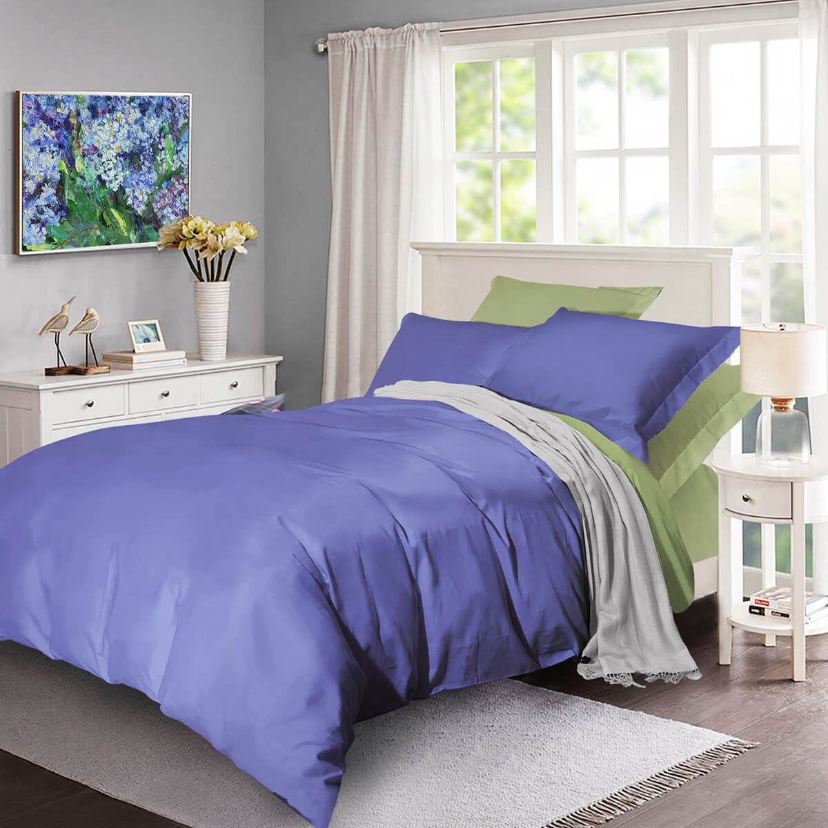 Комплектность: 1 простыня 230*240, 1 пододеяльник 210*230, 2 наволочки 50*70 (+5 см ушки), 2 наволочки 70*70 (+5 см ушки)