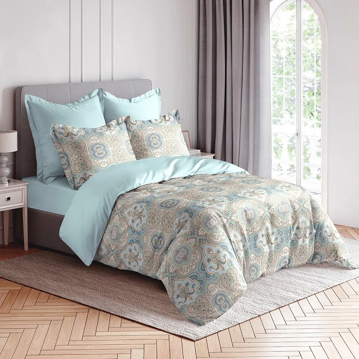 Комплектность: 1 простыня 230*245, 1 пододеяльник 210*230, 2 наволочки 70*70 (+5 см ушки) , 2 наволочки 50*70 (+5 см ушки)