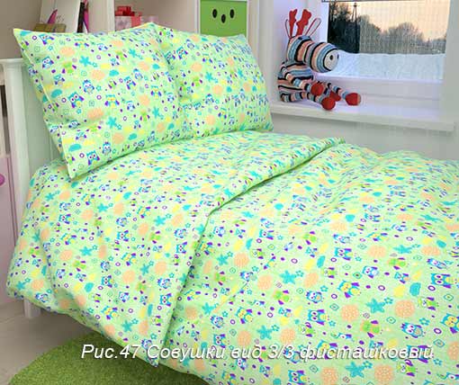 Совушки №047 (фисташковый) КПБ Бязь Акварелька ясли