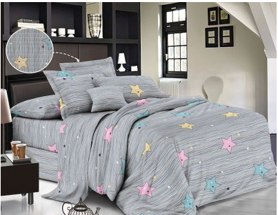 Комплектность: 1 простыня 220*240, 2 пододеяльника 145*210, 2 наволочки 70*70