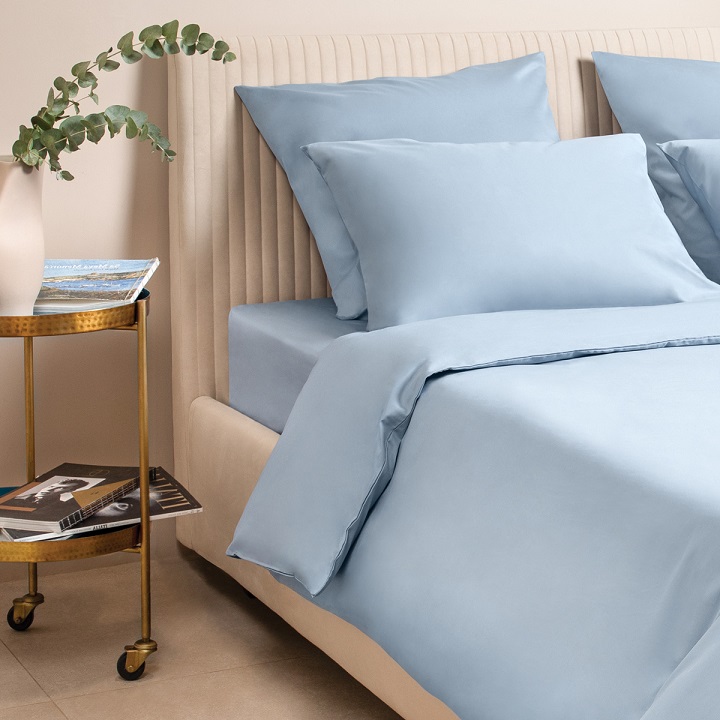 Серо-голубой постельное бельё из сатина Моноспейс Ecotex 2 спальное с европростыней