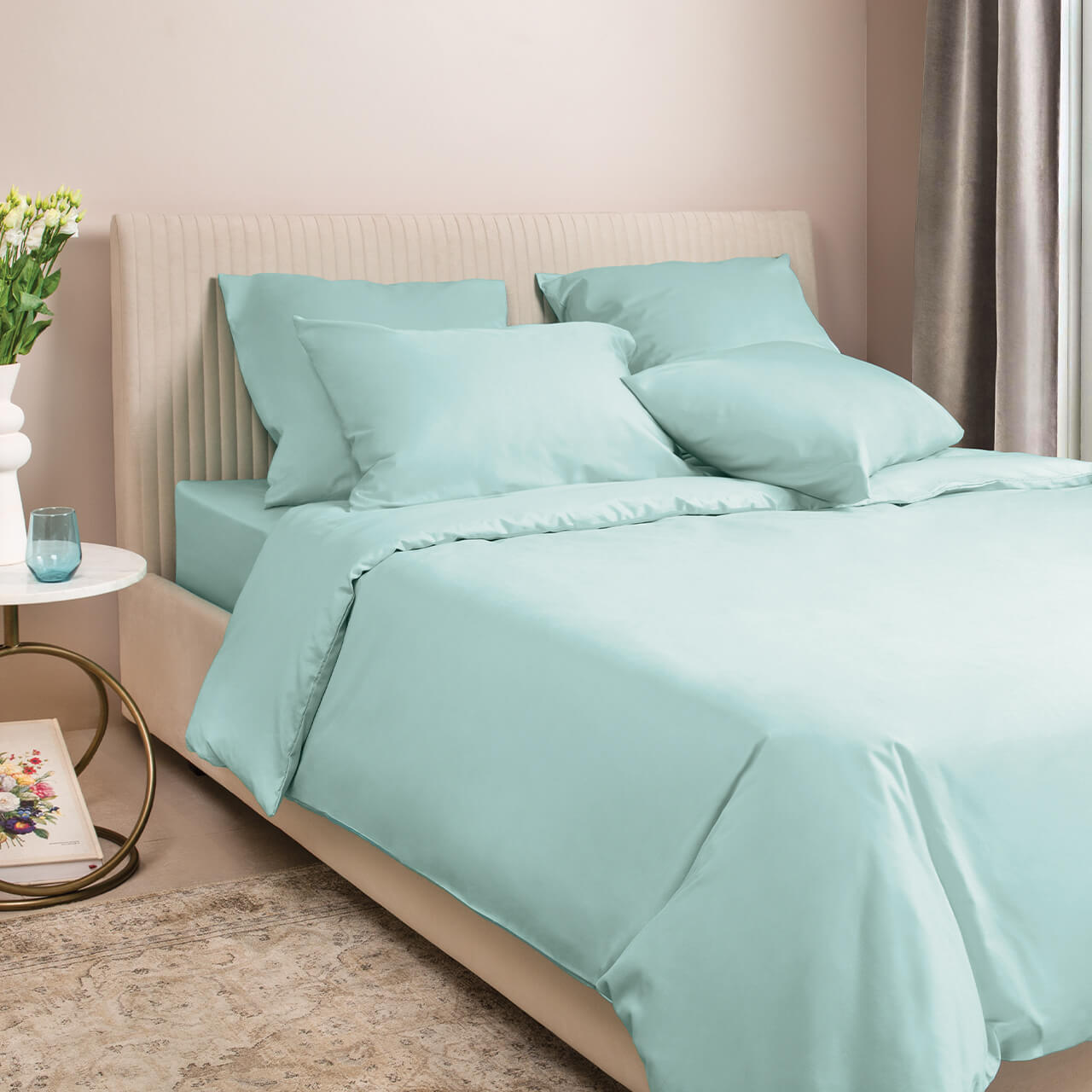 Нежно-голубой постельное бельё из сатина Моноспейс Ecotex семейное