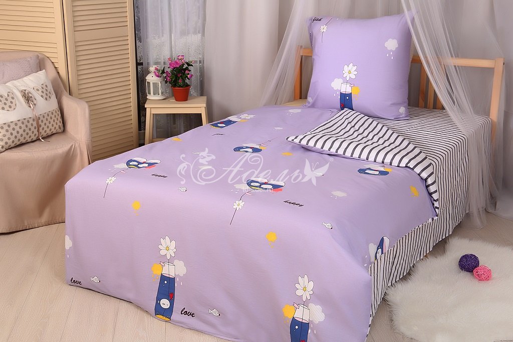 Комплектность: 1 простыня 145*210, 1 пододеяльник 145*210, 1 наволочка 70*70