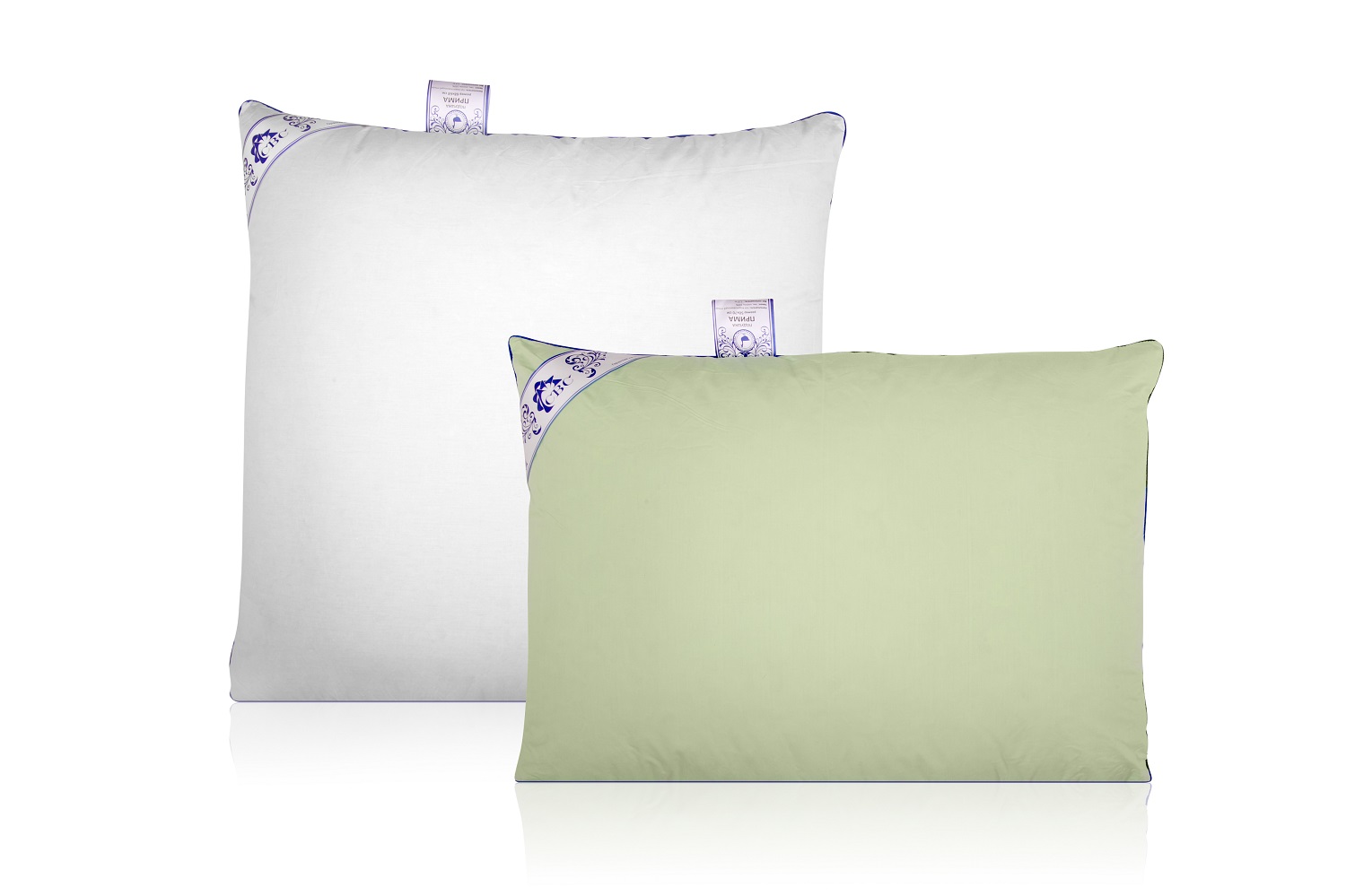 Ткань чехла: тик пуходержащий/комбинированный пуходержащий тик на подушках - белый+фисташка