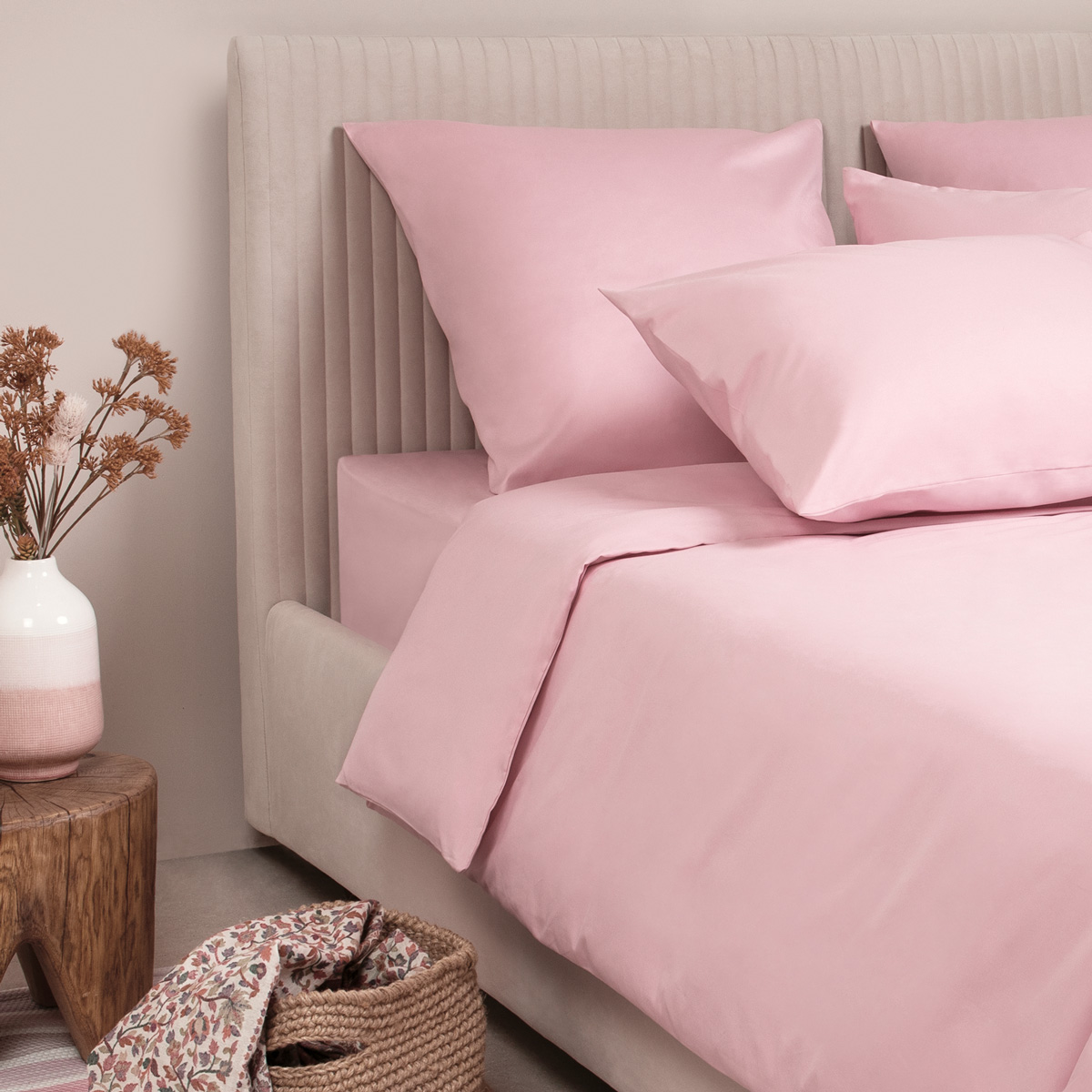 Светло-розовый постельное бельё из сатина Моноспейс Ecotex 2 спальное с европростыней